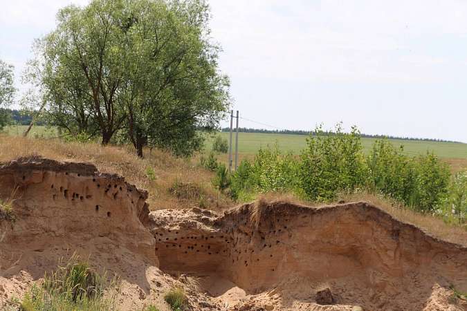 Гнезда ласточек-береговушек у опушки леса (Волжский район)