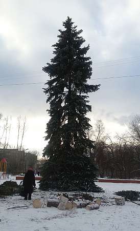 Главная елка Волжска в ожидании новогоднего убранства