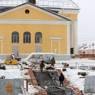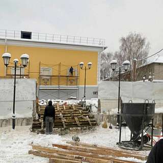 link Вид на кинотеатр через ограждения строительной площадки
