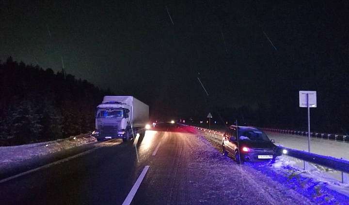 18 декабря, около 15 час. 30 мин., на 15 км автодороги «Йошкар-Ола – Зеленодольск» Республики Марий Эл, 58-летний водитель, управляя автомашиной ВАЗ-219470, по предварительным данным, не выбрал безопасную скорость с учетом дорожных и метеорологических условий, не справился с управлением и совершил наезд на отбойник с последующим столкновение с грузовой автомашиной Scania с полуприцепом под управлением 53-летнего водителя. В результате ДТП телесные повреждения получила 53-летняя пассажирка ВАЗ.