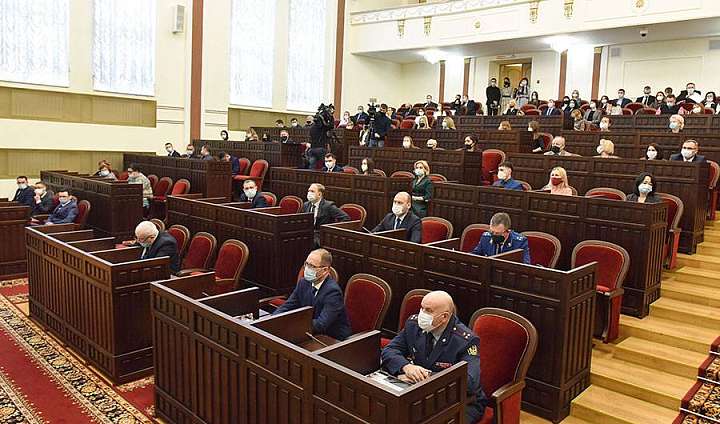 От имени Главы Марий Эл Александра Евстифеева региональных судей поприветствовал Министр - полномочный представитель Главы республики Николай Коротков. Обращаясь к присутствующим, он отметил хорошие результаты работы судов и проинформировал судейское сообщество об основных достижениях Правительства республики за 5 лет.