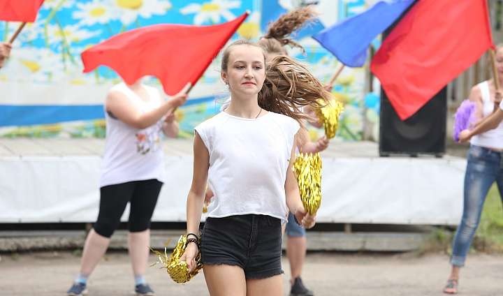 По центральной улице прошли колонны юнармейцев, «Бессмертного полка», солдат и офицеров запаса.