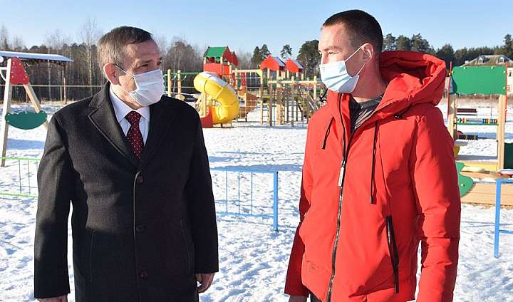 Глава Марий Эл Александр Евстифеев побывал с рабочим визитом в селе Помары Волжского района, где в текущем году проводились работы по строительству новой детской площадки.