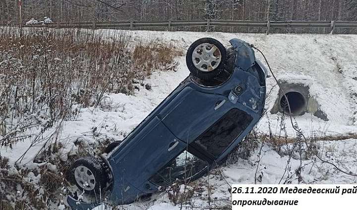 26 ноября 07.45 ч. в Медведевском районе (Марий Эл) на 31 км объездной автодороги г. Йошкар-Олы 22-летняя девушка, управляя автомашиной RENAULT SANDERO, не выбрала безопасную скорость, обеспечивающую контроль за движением транспортного средства, не справилась с управлением, совершила съезд в левый кювет с последующим опрокидыванием. Водитель получила травмы, ей назначено амбулаторное лечение.