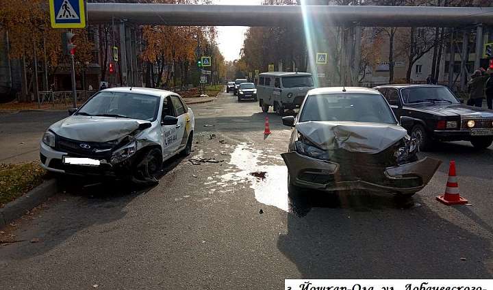 15 октября около 9 утра в г. Йошкар-Оле (Марий Эл) на регулируемом светофорами перекрестке ул. Лобачевского и ул.Зарубина 76-летний водитель «Лады Гранты», по предварительным данным, при повороте налево на запрещающий сигнал светофора столкнулся со встречной автомашиной «Лада Гранта», 42-летний водитель которой, предварительно, проехал регулируемый светофорами перекресток в прямом направлении на запрещающий сигнал светофора. В результате ДТП 76-летний водитель «Лады Гранты» с травмами был госпитализирован.
