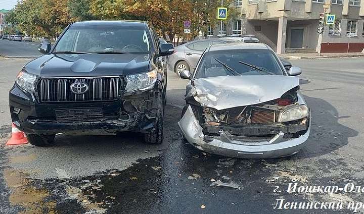27 сентября около 10 часов 20 минут в городе Йошкар-Оле (Марий Эл) на регулируемом перекрестке Ленинского проспекта и улицы Советской 34-летний водитель, управляя автомашиной Kia Spectra, по предварительным данным, при повороте налево на зеленый сигнал светофора не уступил дорогу транспортному средству, движущемуся со встречного направления прямо, в результате чего совершил столкновение с автомашиной Toyota Land Cruiser под управлением 62-летнего водителя. В результате ДТП телесные повреждения получила 41-летняя женщина-пассажир автомашины Kia Spectra.